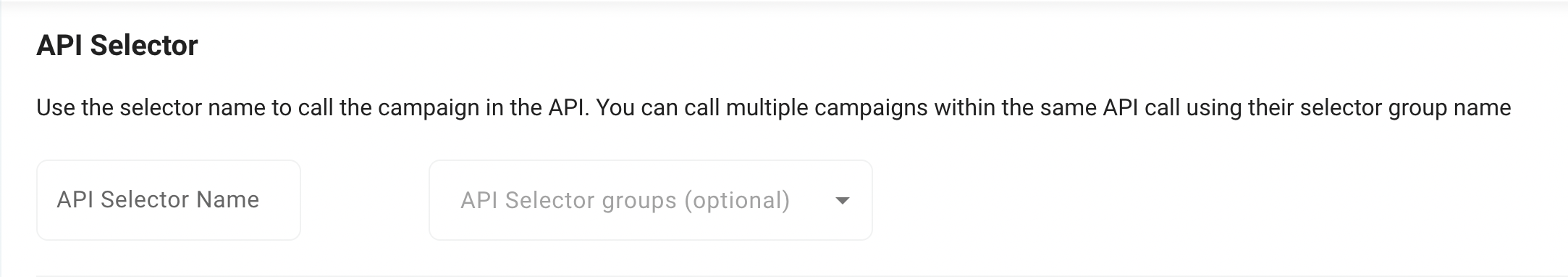 The campaigns are identified in the requests by API Selector Name or API Selector Groups.